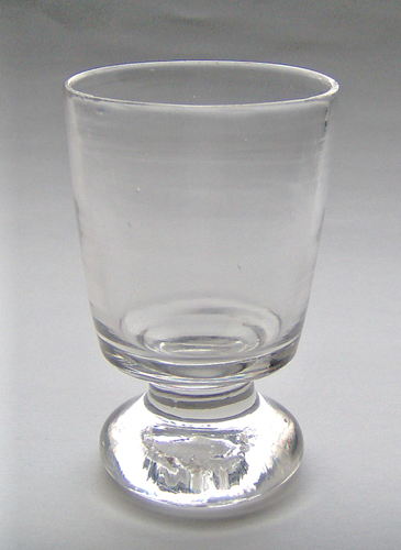 Punchebæger, glat tykvægget, klokkeformet kumme på massiv ringfod.