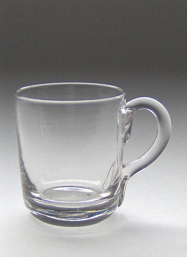 Lille krus med påsat hank, facetslebet på nederste del af kruset.