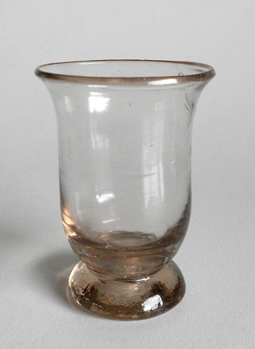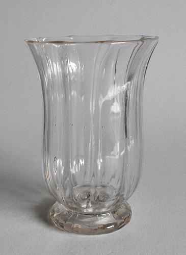 Punchebæger. Opdrevet, anhæftet. Klokkeformet kumme på lav fod. Fastblæst med kannelurer, som fortsætter på foden. Tvivlstilfælde.