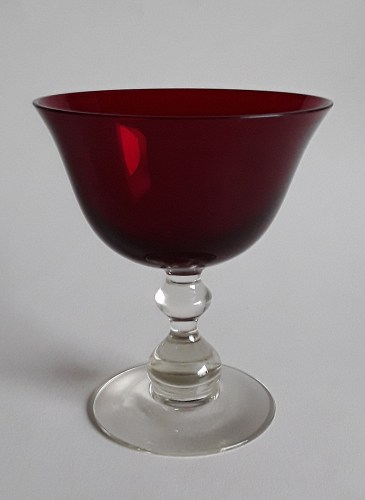 Champagne/isglas fra servicet "H.C.Andersen" med rubinrød kumme på klar profileret stilk og flad fod.