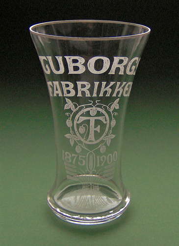 Ølglas, let timeglasformet med guldkant. På korpus matætset "TUBORGS FABRIKKER 1875-1900"