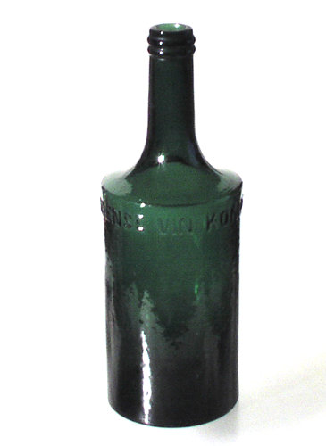 Mundblæst grøn cylindrisk flaske med insk. "ODENSE VIN KOMPAGNI" lige under skulderen. Er blevet brugt til Surinam rom.