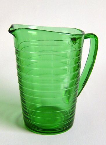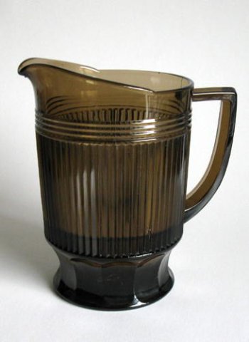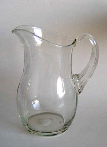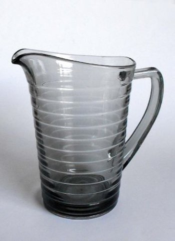 Optisk stribet kande med hældetud og påsat stærkt riflet hank.