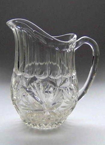 Kande presset med efterligning af skærslibning og facetter. Kanden hører til stableglassene nr. 7311.