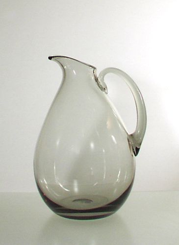 Stor smoke farvet 2 liters kande, glat let konisk med lille hældetud og påsat massiv hank.